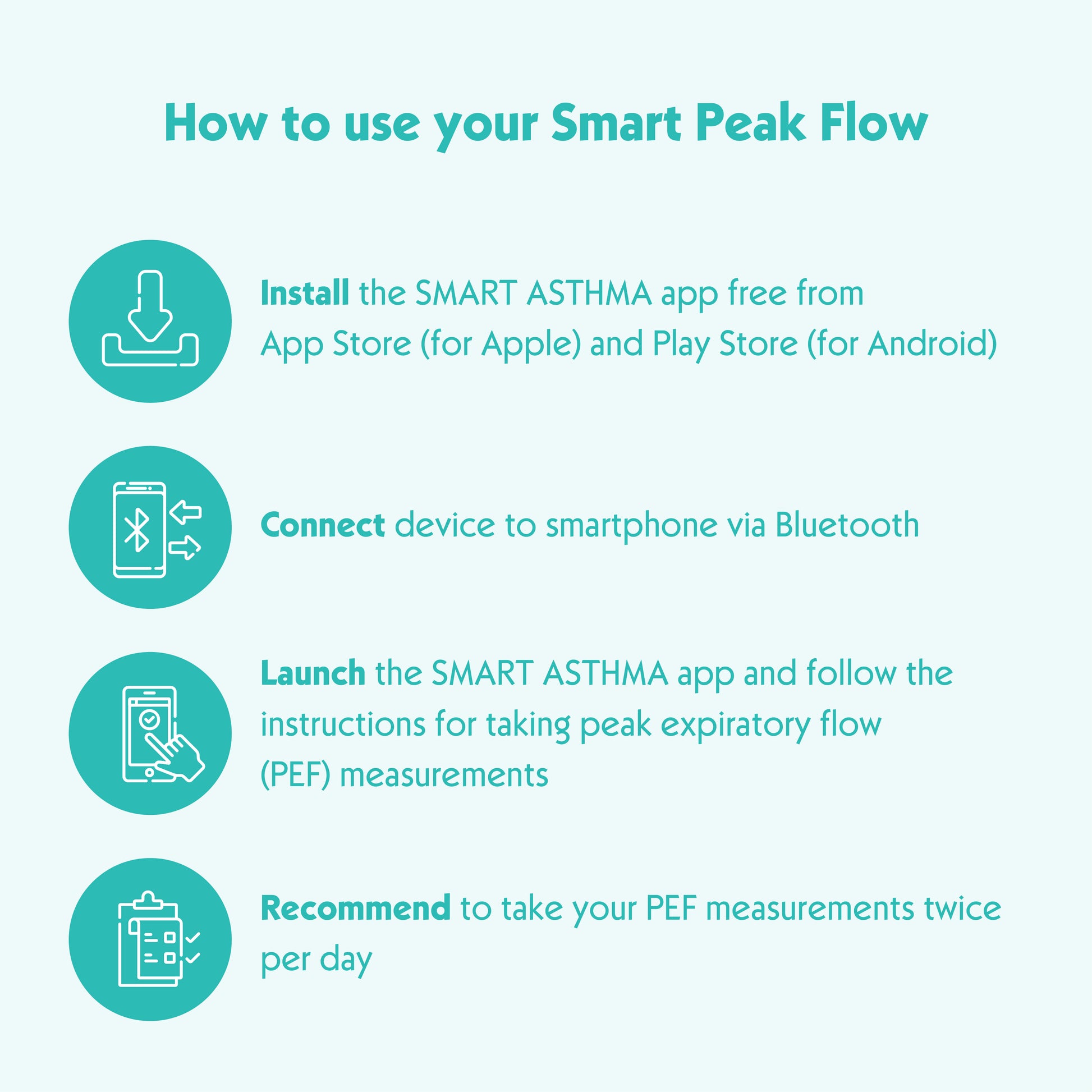 We recommend cleaning the mouthpiece and the SMART PEAK FLOW device regularly to maintain the product as it works best when clean. Check the mouthpiece and device turbine after each use to ensure they are clean and clear of foreign objects or substances. You can clean both the mouthpiece and device turbine in a bath of lukewarm water. Make sure both are dry before using it again. We also recommend keeping your SMART PEAK FLOW device and mouthpiece in the carry bag provided when not in use. For more information on cleaning, please refer to the section CLEANING AND DISINFECTION in the User Manual.